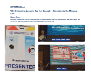 Shawn presented at the 2025 World Conference on Drowning Prevention in Cairo (November 21-23, 2025). Her presentation, “Why Swimming Lessons Are Not Enough. Education is the Missing Link,” reached global water safety leaders.