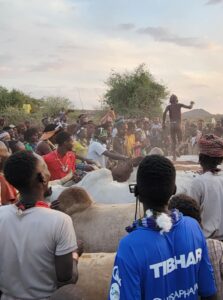 Bull jumping ceremony: young boys performing passage to adulthood. A father ill, wanting to witness his sons’ transition.