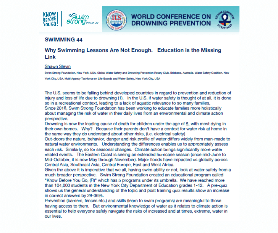 Presentation Title: Why Swimming Lessons Are Not Enough. Education is the Missing Link